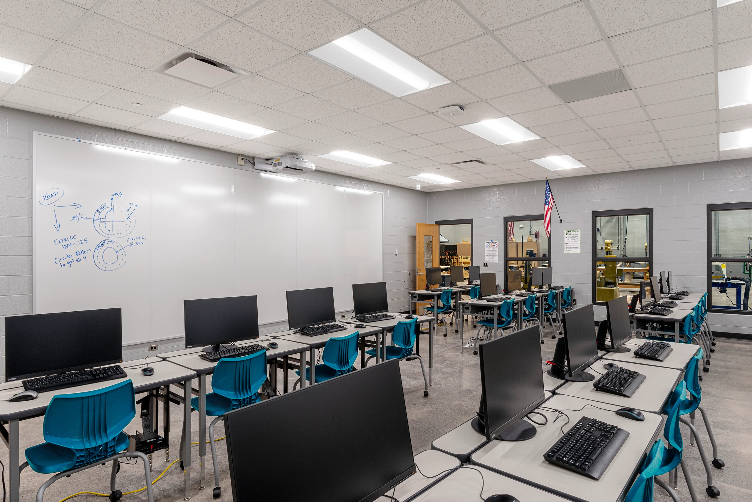 The completed fitness addition now serves as a regional showpiece, featuring a naturally daylit environment with turf running lanes and raised platforms for optimized staff supervision. Meanwhile, the vocational addition provides a sophisticated mix of “clean” and “dirty” labs tailored for robotics, CAD, metalwork, woodworking, and industrial maintenance. The project also delivered a new Special Education (SPED) suite and additional classrooms, resulting in a versatile facility that balances high-level athletic training with robust career and technical education.