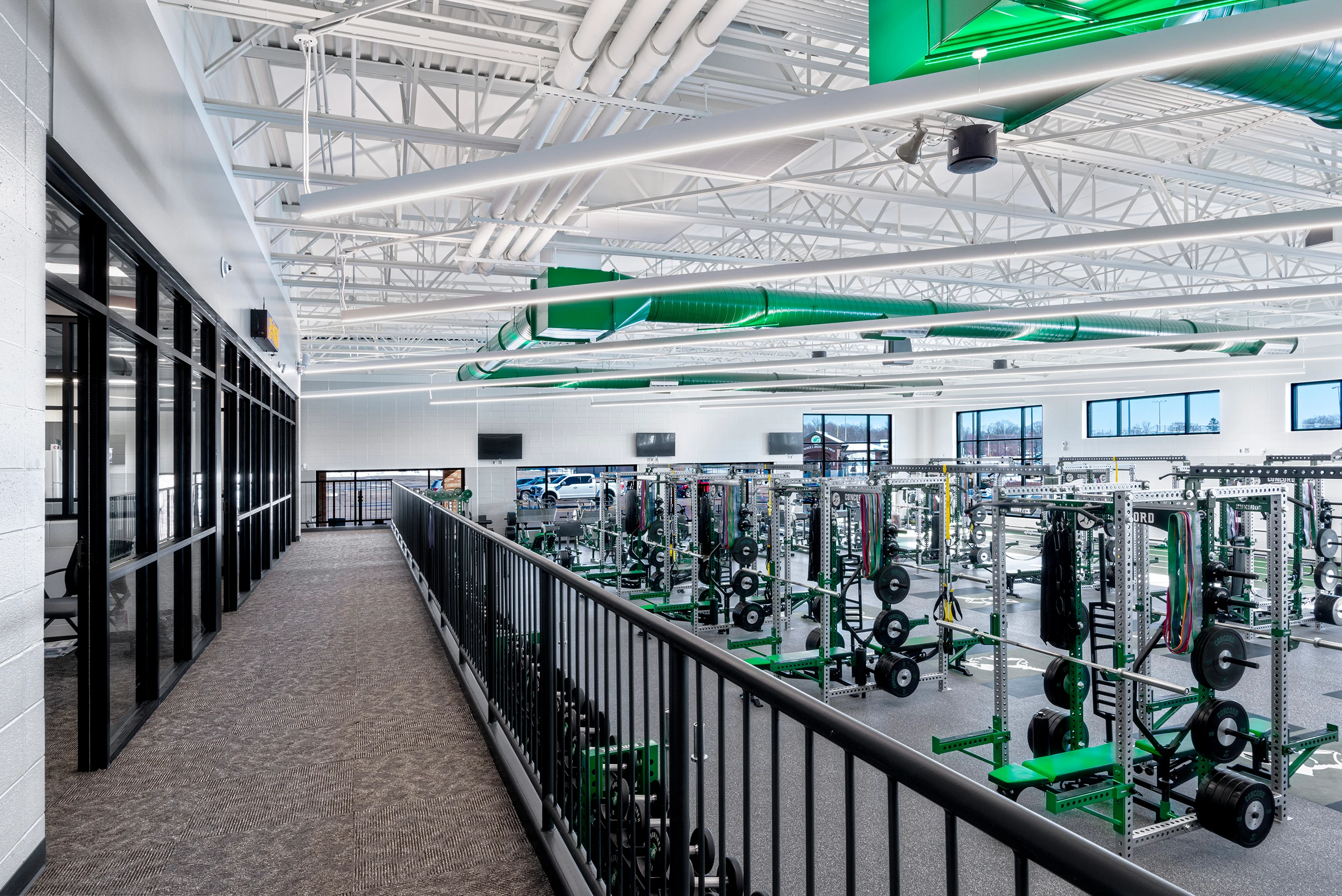 Concord High School undertook a series of strategic improvements through two distinct projects—Fitness and Vocational—aimed at expanding student opportunities and modernizing aging infrastructure. Prior to these updates, the school’s weight room was located in an undersized, upstairs space that had become unsafely crowded, while vocational offerings were limited by a lack of specialized facilities. To address these needs, the project introduced high-performance athletic space and a dedicated vocational wing, alongside a broader effort to improve internal circulation throughout the campus.