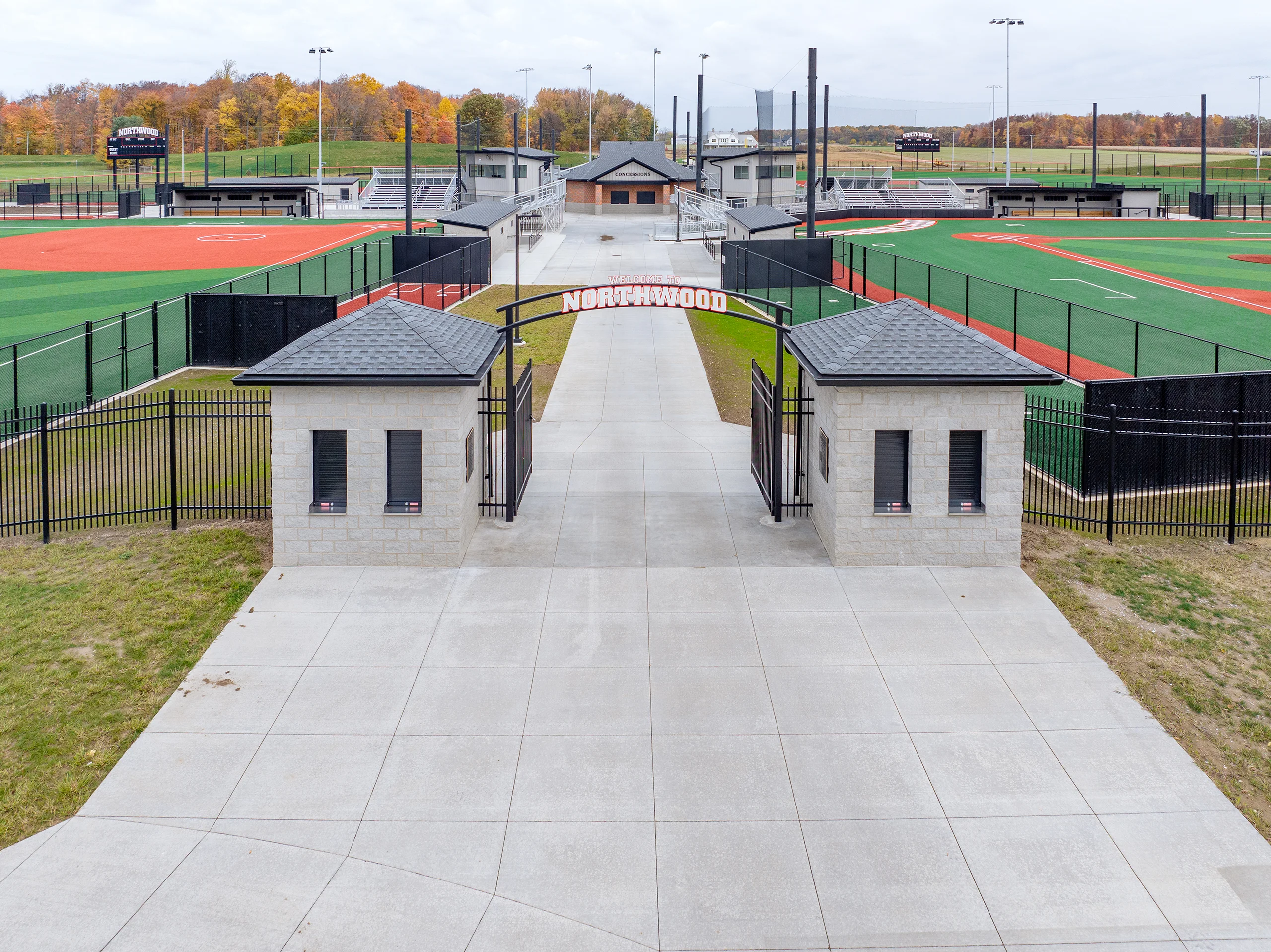 In 2023, NorthWood High School transformed its campus with the addition of an unrivaled baseball and softball complex that has since garnered high praise from both the Nappanee community and visiting teams. The expansive project features two turf baseball fields and two turf softball fields, supported by a central restroom and concession building, storage and press box facilities, and modern grandstands. Designed with comprehensive site work and premium ballpark amenities, the complex provides the infrastructure necessary to host large crowds and multiple concurrent events at a premier level.